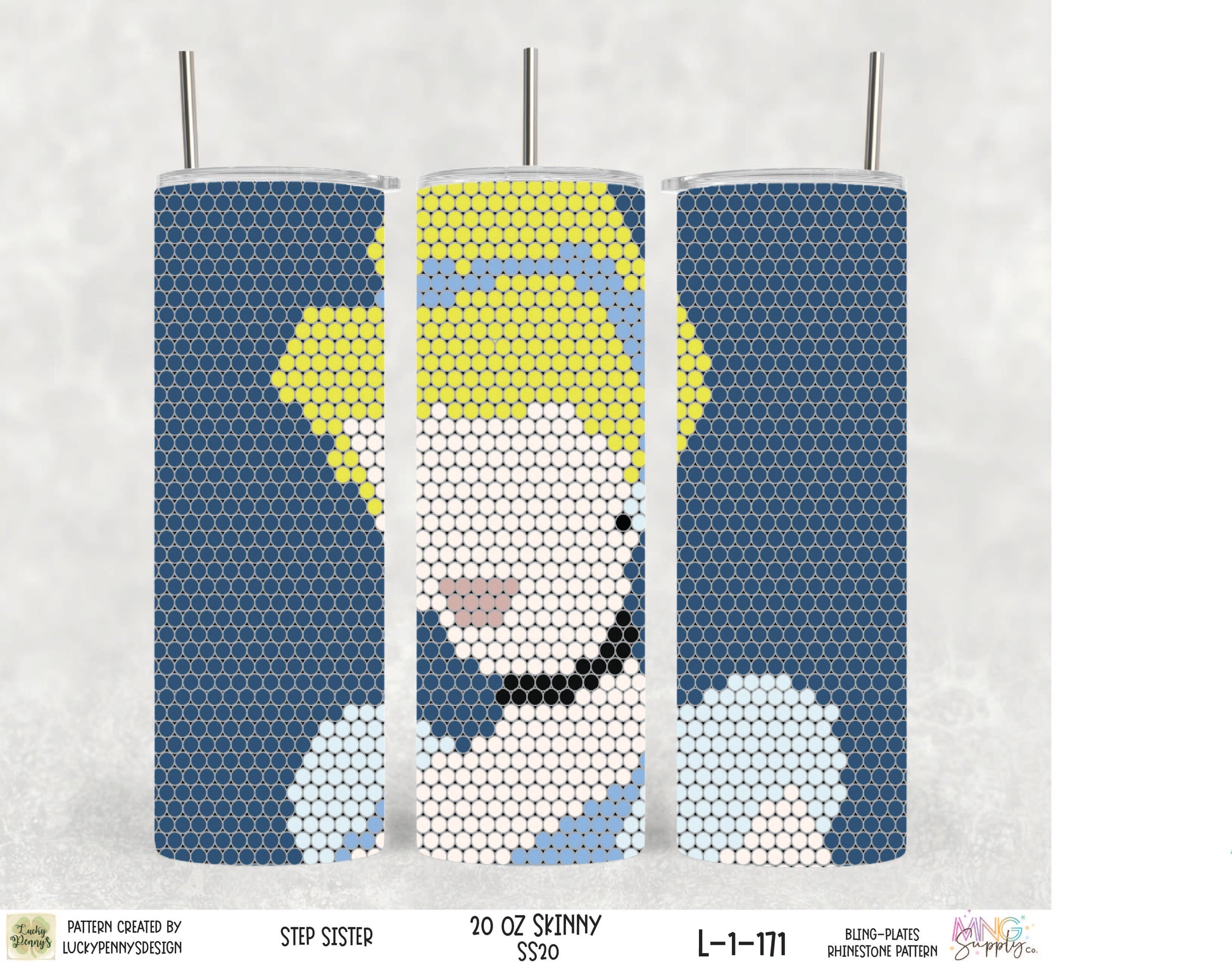 Step Sister is sized to fit MOST 20oz Skinny Tumblers. This pattern uses SS20 in glass stones, or 5MM in resin stones.
