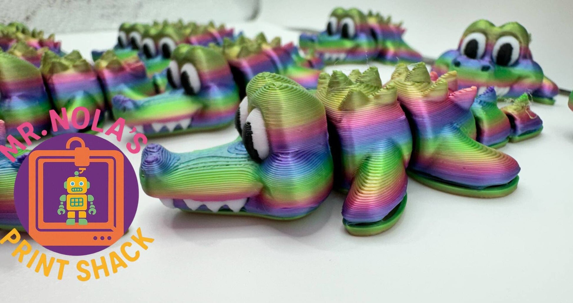 Whether he’s stacking himself like a totem, sunbathing on your desk, or rolling deep with his gator gang, Gabe brings chaotic good vibes and a splash of fabulous to every corner he claims. Perfect for party favors, pride collections, or emotional support reptiles.