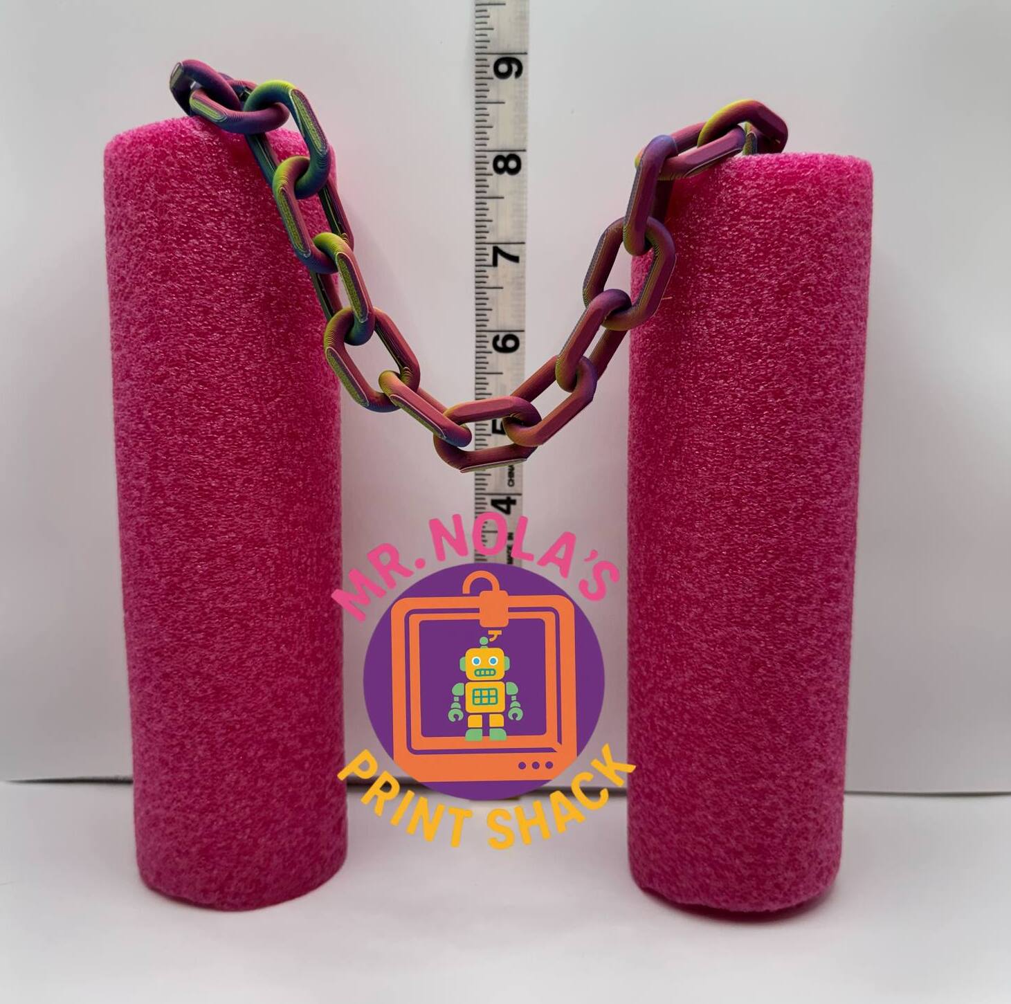 Strike fear (or at least giggles) into the hearts of fellow floaters with these 3D printed Noodle-Chuks! Designed to fit snugly into standard pool noodles, each set comes with two textured handles connected by a sturdy chain of rainbow-fabulous links. Whether you’re defending your raft, declaring war over the last juice box, or just want to dramatically twirl something while poolside, these are your go-to splash weapons.