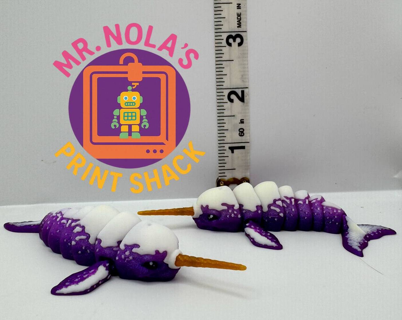 Meet Gnarles — the 3D printed narwhal with a glittery golden horn and an attitude saltier than the sea he swam in on his way to your shelf.